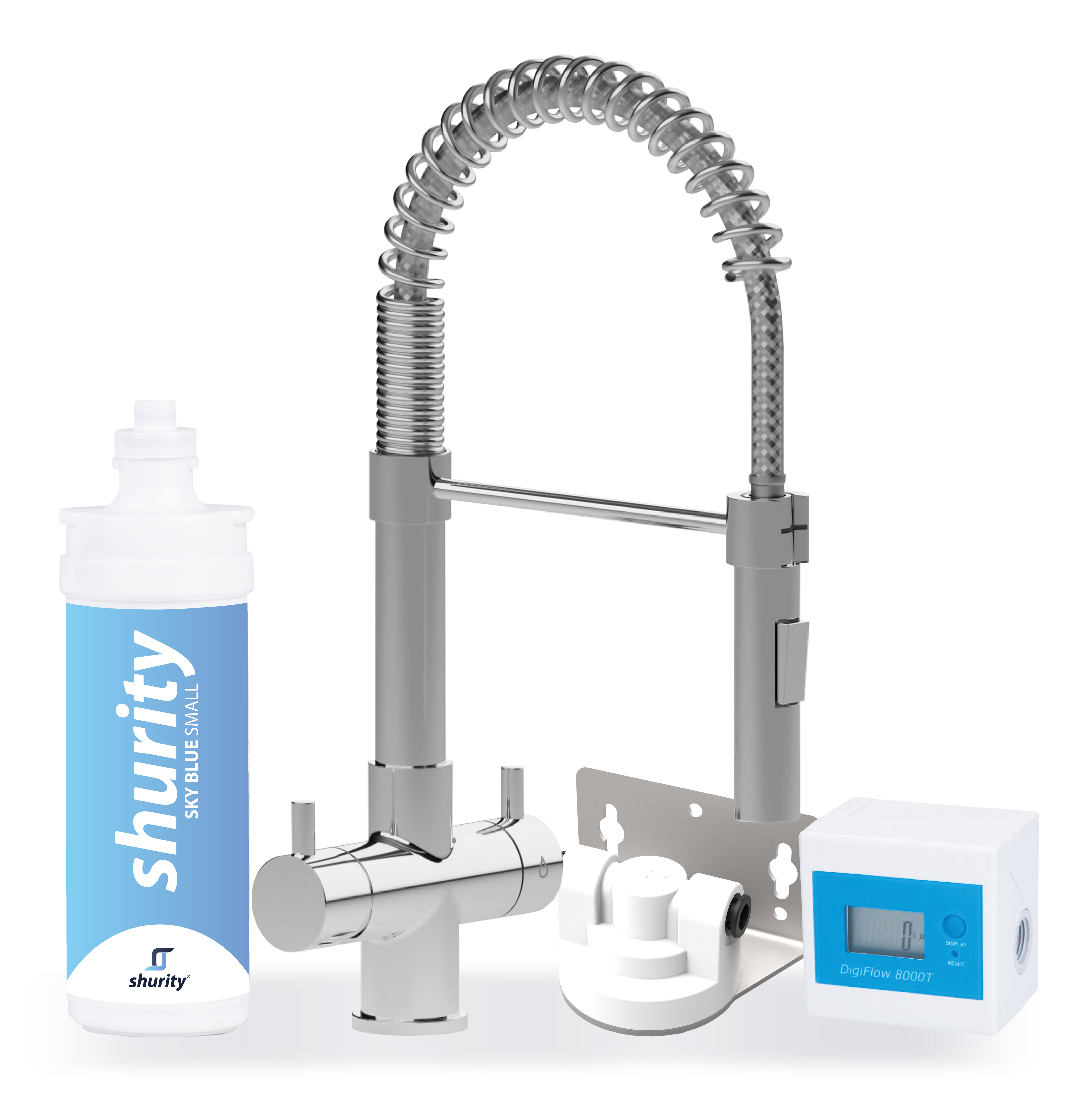 Shurity Kit Microfiltrazione acqua con filtro Sky Blue Small con Rubinetto unico 3 Vie Modello Milano Cromo – Acqua Liscia