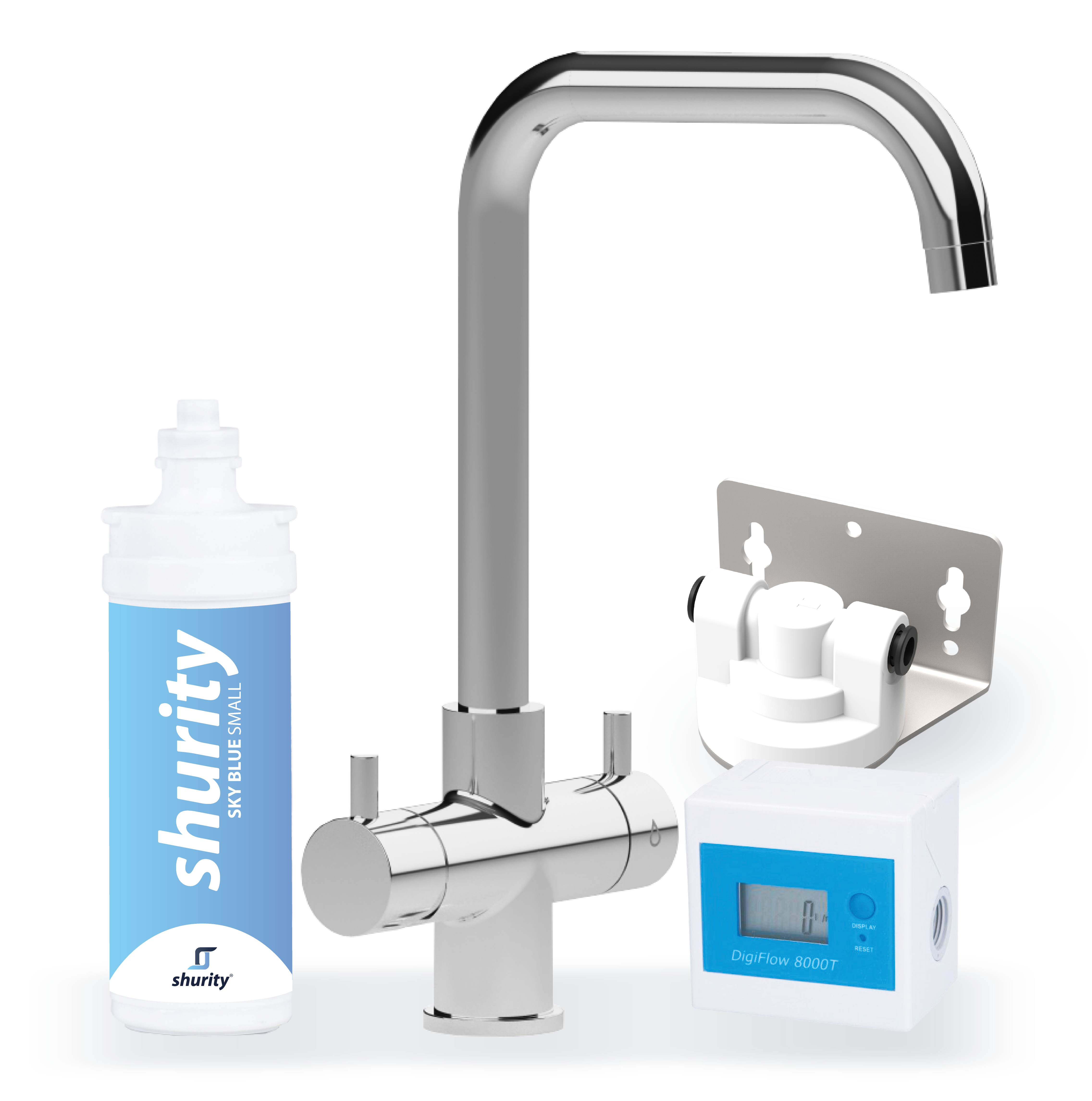 Shurity Kit Microfiltrazione acqua con filtro Sky Blue Small con Rubinetto unico 3 Vie Modello Monza Cromo – Acqua Liscia